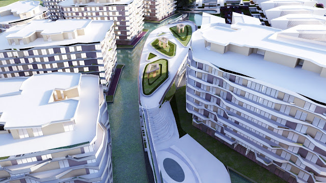 و الكومباوند مقسم الى منطقة عمارات وكذلك منطقة فيلات بمدخل خاص بها.